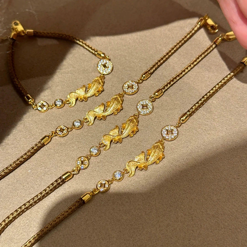 Lucky Fish Charm Sterling Silver Bracelet