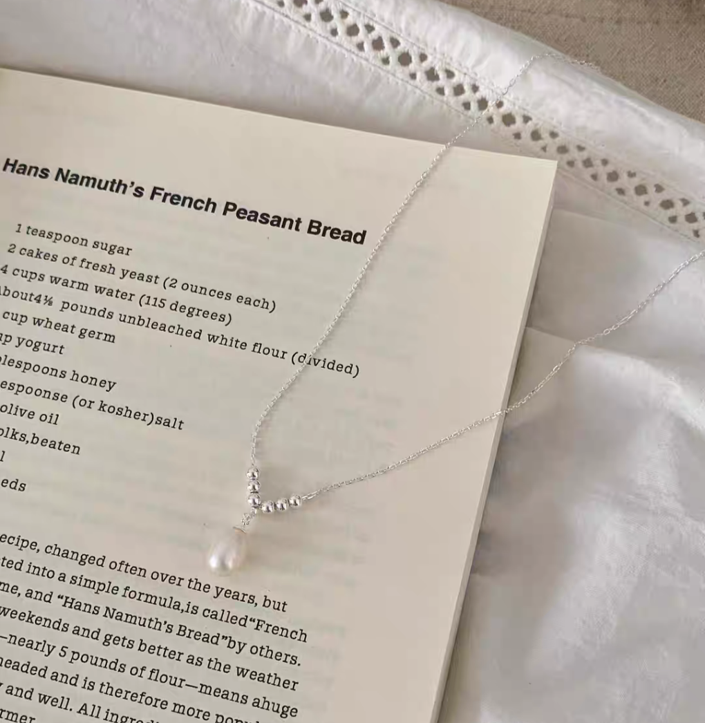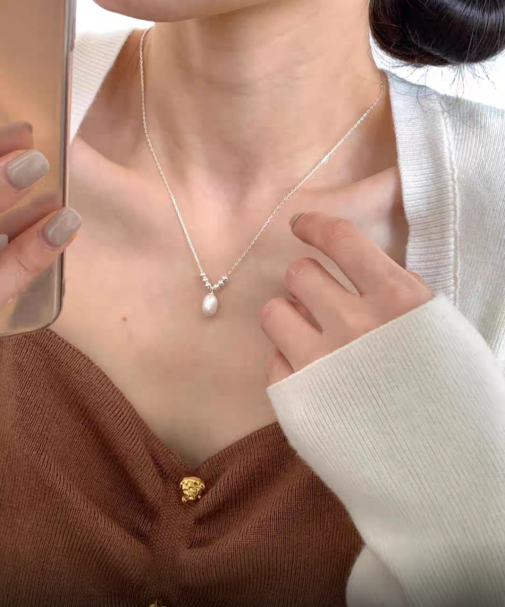 Mermaid Tear Drop Sterling Silver Pearl Necklace