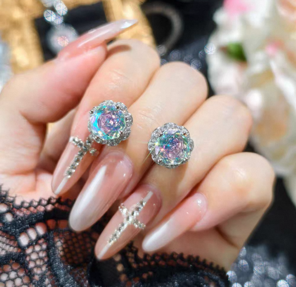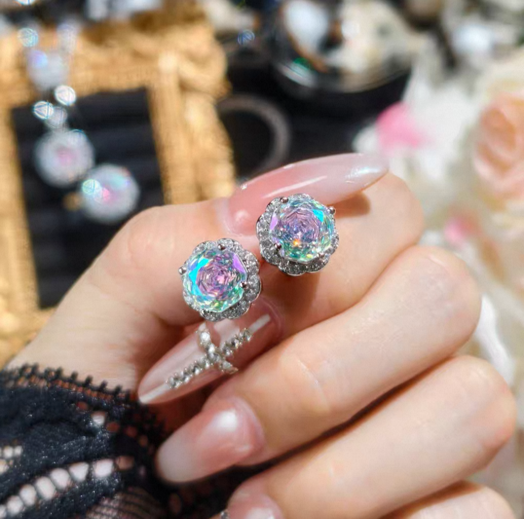 Rainbow whispers Sterling Silver High Carbon Diamond Stud earrings