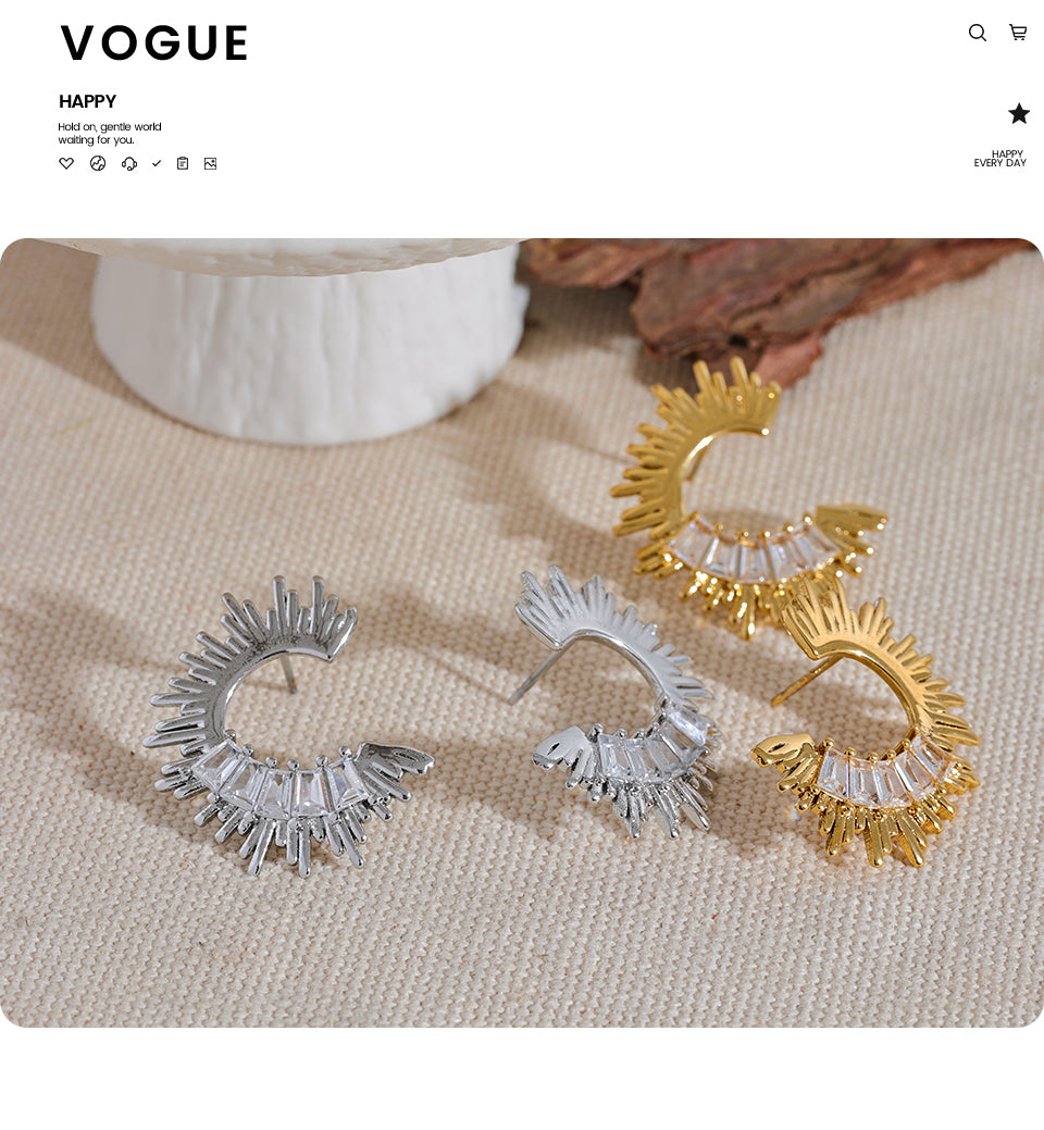 Sunrise 18k Gold Filled Cubic Zircon Stud Earrings